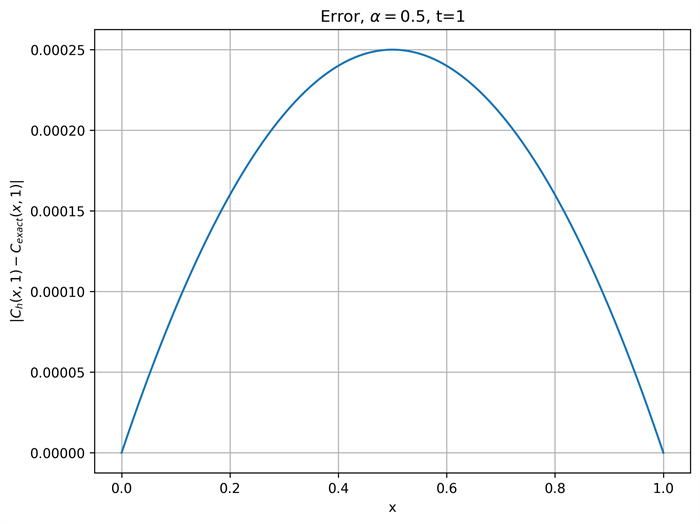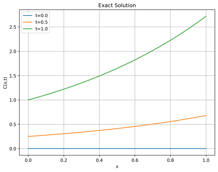 Exact solution C(x, t) of Eq. (4.1) with boundary conditions (4.2) and initial condition (4.3).