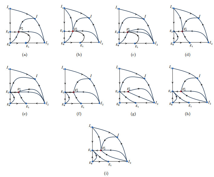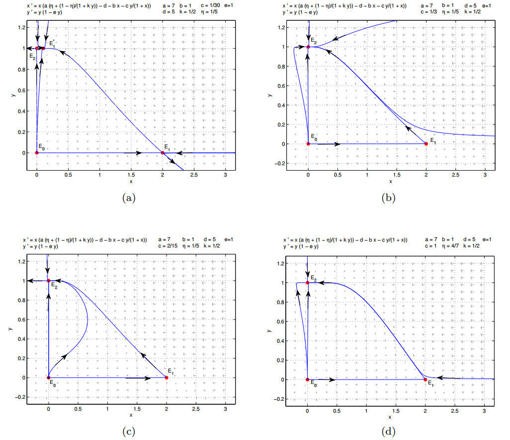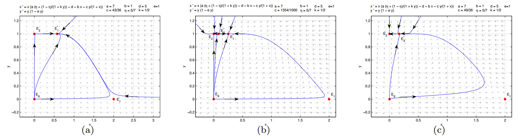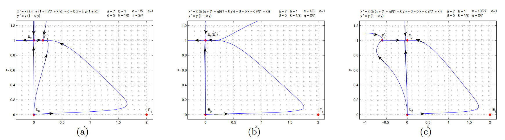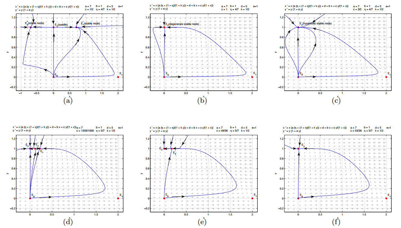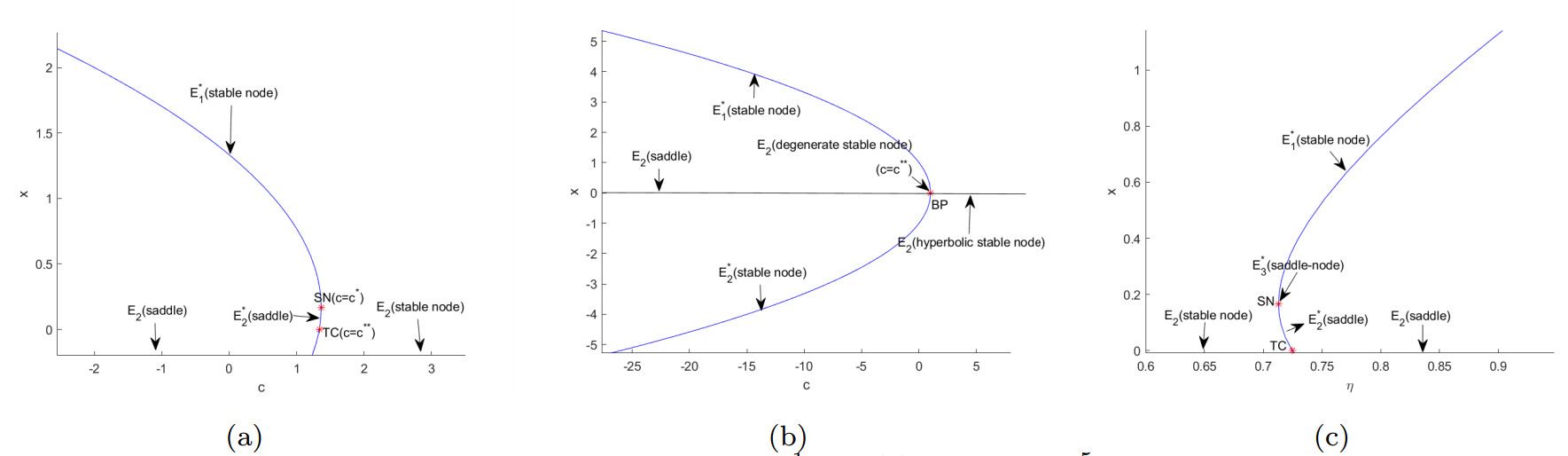 In (a)-(c), system (1.7) experiences a pitchfork bifurcation at