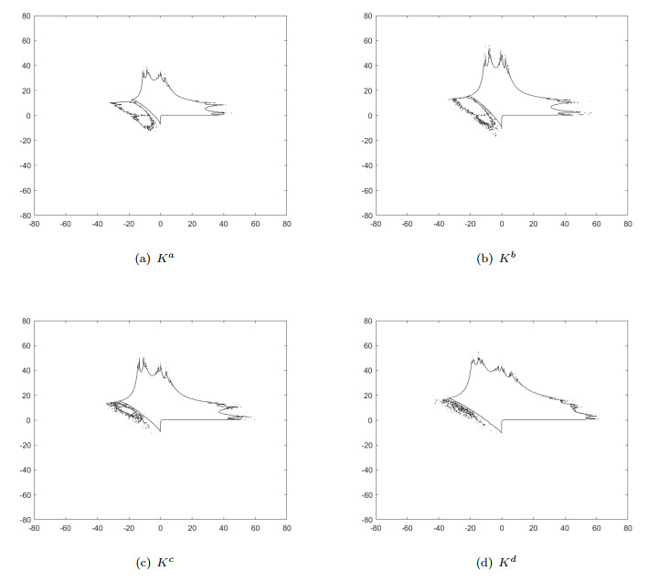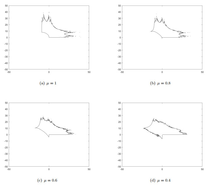 Julia sets of system (4.2) with varying controller parameters, when the parameters are taken as
