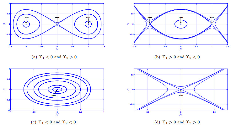 Phase portraits corresponding to distinct cases of parameter values representing the nature of EPs.