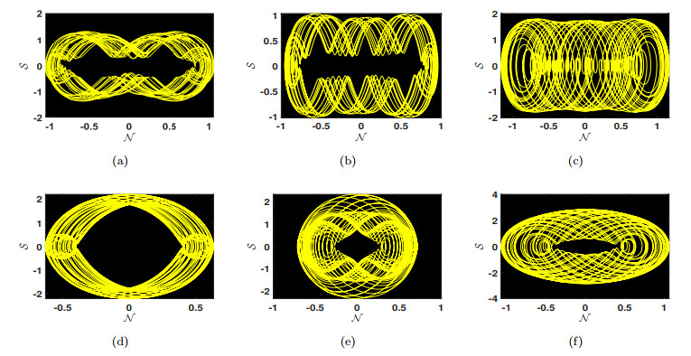 Physical dynamics of chaos are shown using 2D phase portraits for system (4.4) obtained by varying the values of