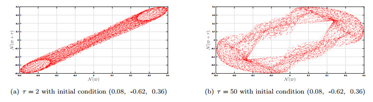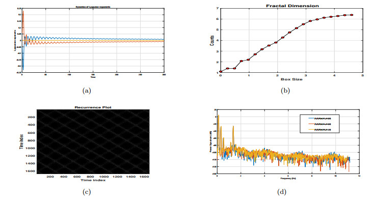 Physical dynamics of strange attractor analysis of the system described by Eq. (4.1) achieved with the values of parameters as