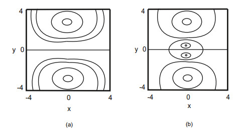 F. Gürcan and A. Deliceoğlu, Streamline topologies near non-simple degenerate points in two dimensional flows with double symmetry away from boundaries and an application, Physics of Fluids, 2005, 17, 093116.